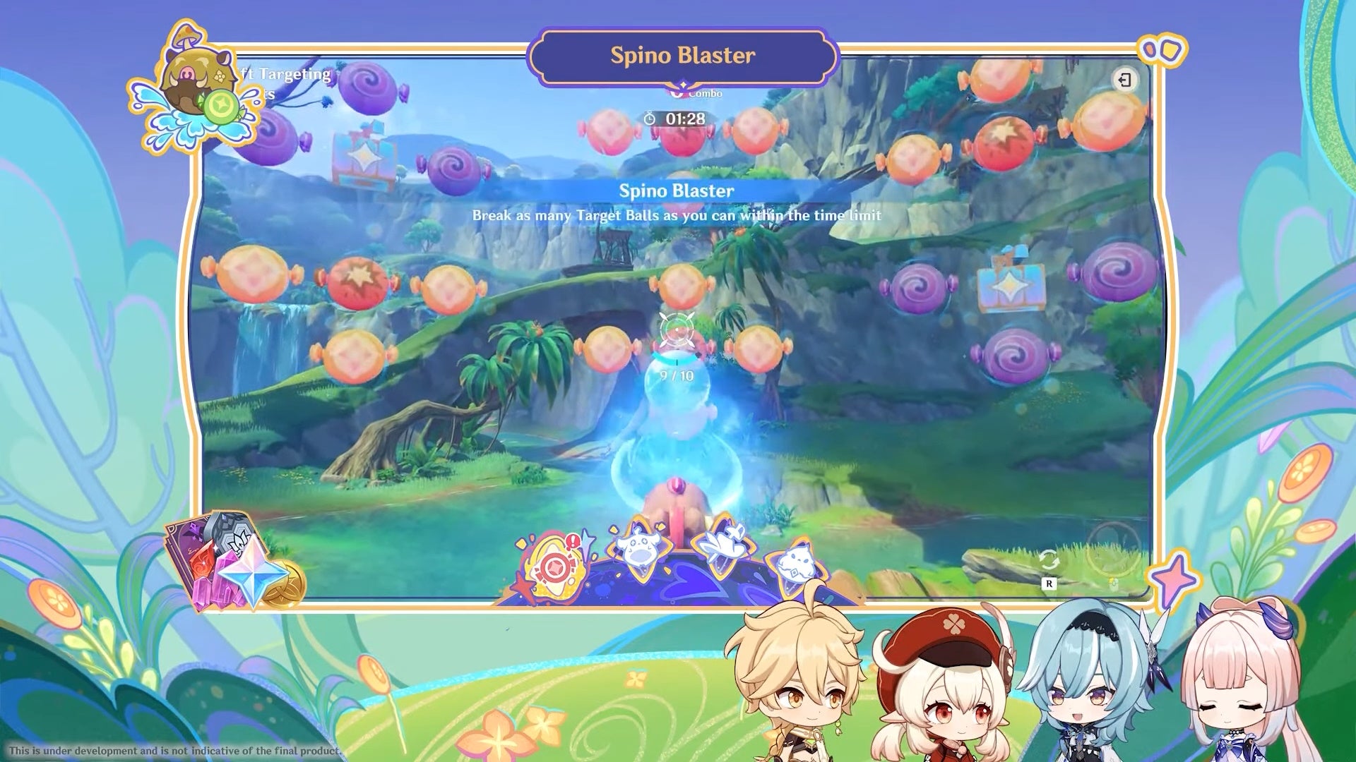Στο Spino Blaster, έχετε τον έλεγχο ενός κανονιού και πυροβολείτε αιωρούμενες μπάλες για να μαζέψετε points. Πιστό στο Summer theme, αυτό το mini-game μοιάζει πολύ με τα παιχνίδια σκοποβολής με νεροπίστολα που υπάρχουν σε λούνα παρκ.